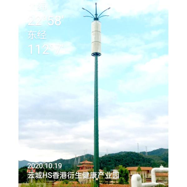 35m High Mast Galvanized Steel Light Pole or Tower with Communication 6 Antennas and 6 LED lamps for Large Field Lighting and 5G Signal Microcell Station as well as Landscaping